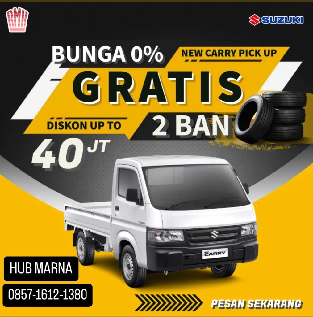 Jangan lewatkan kesempatan emas! Beli Suzuki Carry Pick Up di RMK Kebon Jeruk sekarang, GRATIS 2 BAN dan DISKON UP TO 40 JUTA! Promo terbatas!